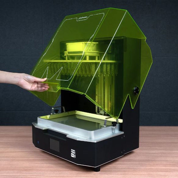 یکی از نقاط قوت این پرینتر ال سی دی 8K آن میباشد , ابعاد این ال سی دی مونوکروم 33x18.5 سانتی است که با توجه به ابعاد آن میتوانید تعداد مدل های بیشتری را در یک مدت زمان مشخص تولید کنید با کمک این ال سی دی شما میتوانید به رزولوشن XY معادل 43µm دست پیدا کنید , زیر این ال سی دی یک منع نور UV پارالل قرار گرفته که قادر به تاباندن پرتوهای UV 405nm است این منبع نوری قدرتمند به شما در تولید لایه های با کیفیت و دقیق کمک بسیاری میکند , الگوی تابش پرتو ها نیز با کمک عدسی های قرار گرفته بر روی منابع نوری به شکلی تنظیم شده است که لایه های به صورت کاملا یکنواخت و با دقت بالا تشکل شوند