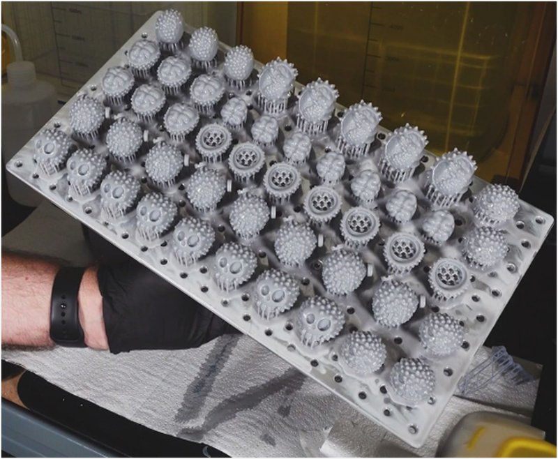 همچنین پلیت به صورت حفره حفره طراحی شده است که به شما در جداسازی آسان مدل ها از روی پلیت کمک بسیاری میکند , در داخل پرینتر یک گیره برای قرار دادن پلیت واقع شده که به کمک آن میتوانید پس از اتمام پرینت پلیت را روی آن قرار دهید تا رزین اضافی به داخل محفظه منتقل گردد